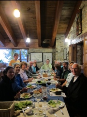 We were then driven in our little bus 1-1/2 hrs to begin a 3 mile walk UP O’Cabreieo,a refurbished hill town w/stone streets stone houses and slate roofs. Our lodgings were a former monastery/hospital – spare, charming and conducive to amplifying any sound. THe walk was grueling and we arrived at the top breathless having trained arduously at sea level! We lit a candle at the little church manned by a single silent monk for our families and the gift of being able to make the trip- a sweet, dear moment. LIfe on the hill is very quiet, dark and cold. After a wonderful group dinner and getting to know one another, we all retired to our cells for a fast night’s sleep. Aside from the uphill torment, this was going to be an interesting adventure!
